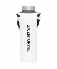 32 oz double wall 18/8 stainless steel thermal bottle with copper vacuum insulation, insulated stainless steel threaded lid, silicone ring, removable strap with buckles, removable clasps, and powder coated finish. Individual gift box. Hand wash recommended. Do not microwave. Complies with FDA, Prop 65. 11" H x 3.1875" W