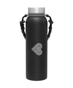 32 oz double wall 18/8 stainless steel thermal bottle with copper vacuum insulation, insulated stainless steel threaded lid, silicone ring, removable strap with buckles, removable clasps, and powder coated finish. Individual gift box. Hand wash recommended. Do not microwave. Complies with FDA, Prop 65. 11" H x 3.1875" W
