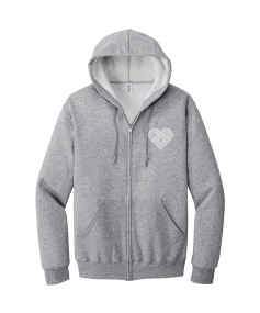 Made with 8 Oz., 50/50% cotton/poly NuBlend® pill-resistant fleece, preshrunk. It has a high stitch density for a smooth printing canvas. It has a single-ply hood with tipped and knotted drawcord and an aluminum zipper 1"x1" rib knit cuffs and double-needle waistband.